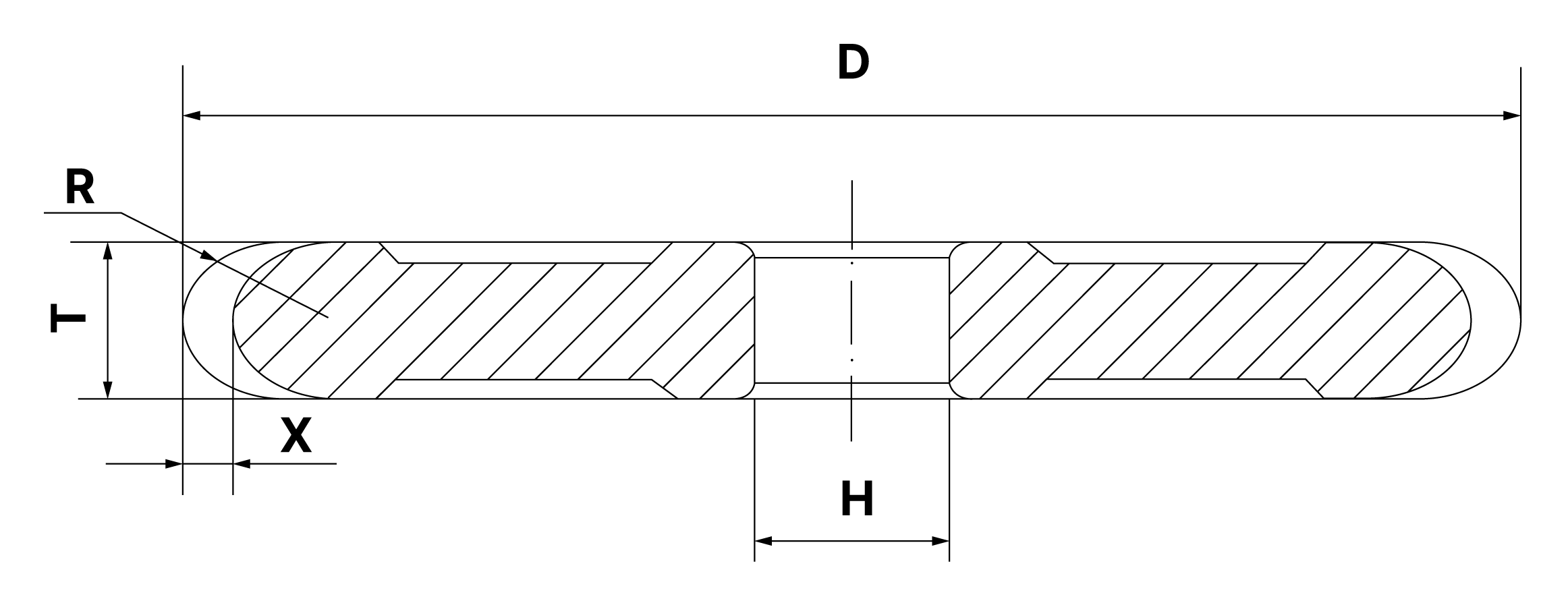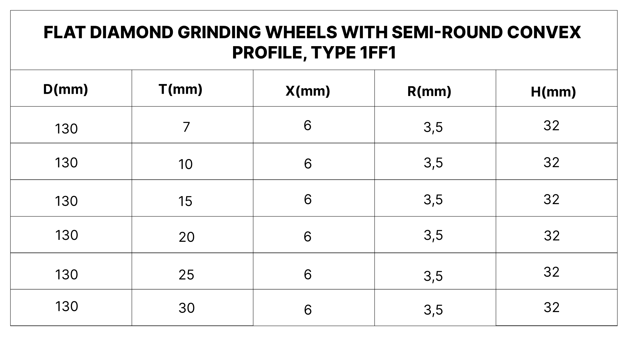 FLAT DIAMOND GRINDING WHEELS WITH SEMI-ROUND CONVEX PROFILE,