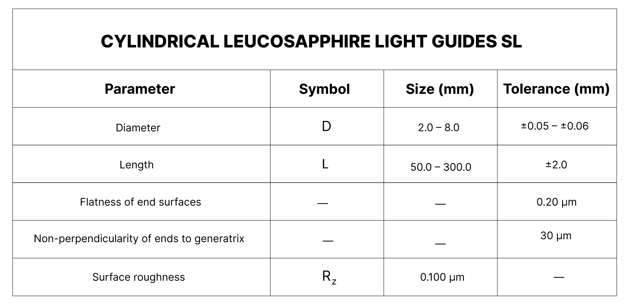 CYLINDRICAL LEUCOSAPPHIRE LIGHT GUIDES SL