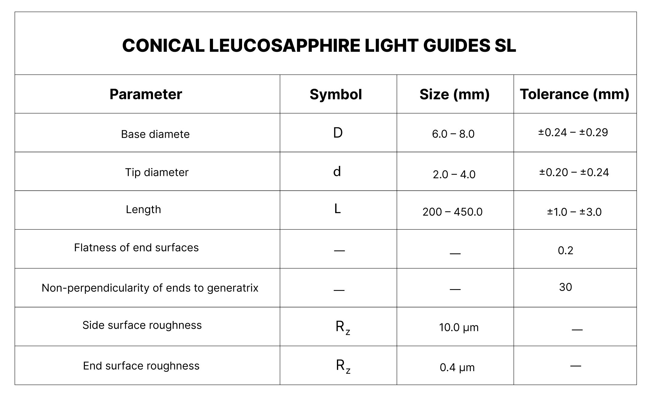 CONICAL LEUCOSAPPHIRE LIGHT GUIDES SL