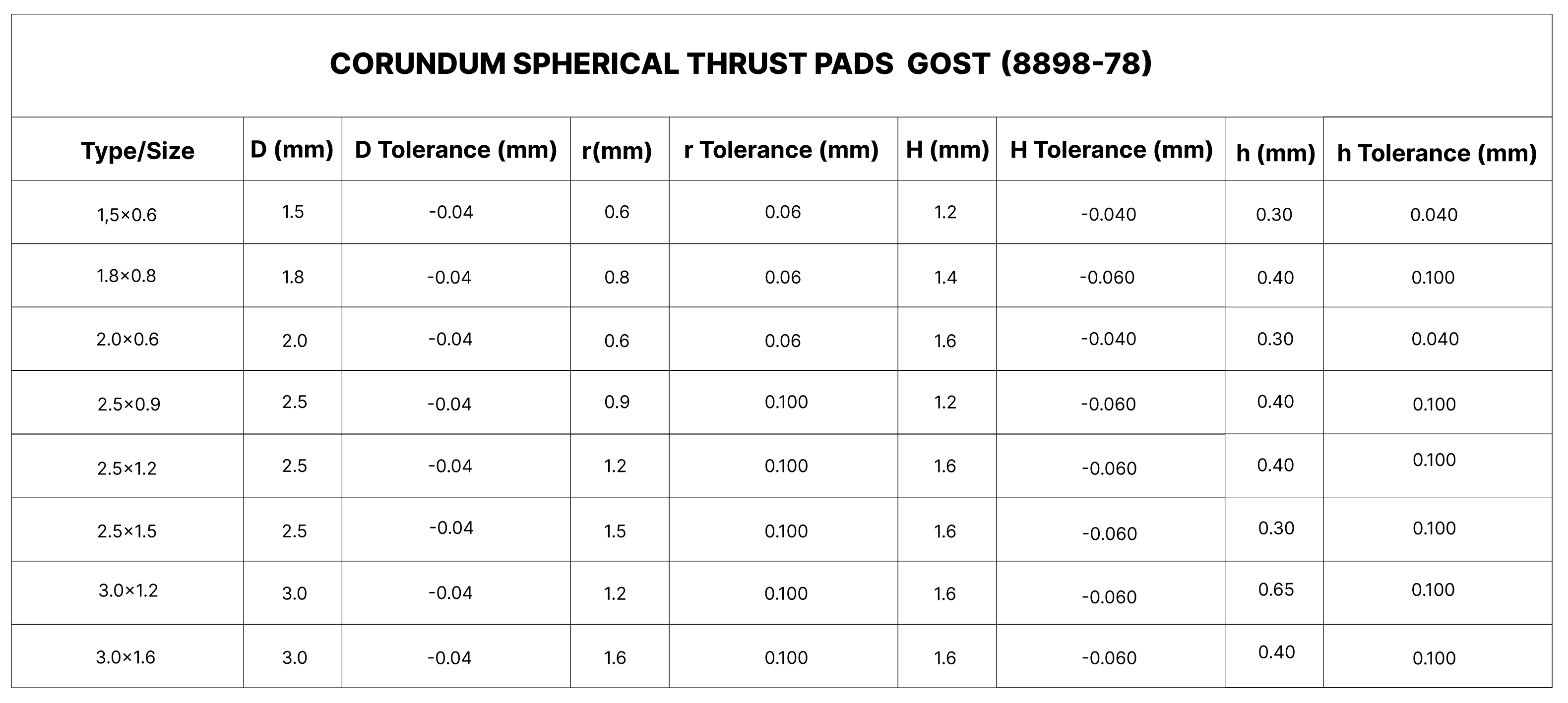 CORUNDUM SPHERICAL THRUST PADS GOST (8898-78)